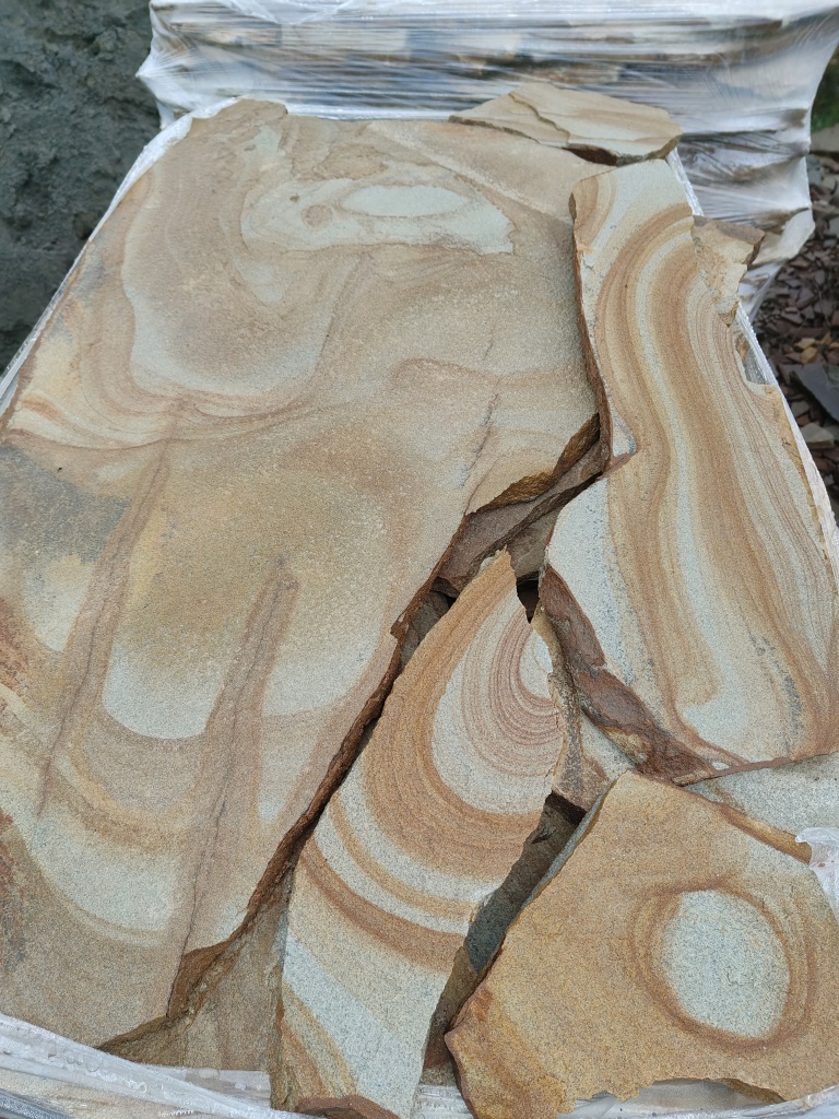 Песчаник жёлтый с разводами для мощения дорожек 40-45 мм